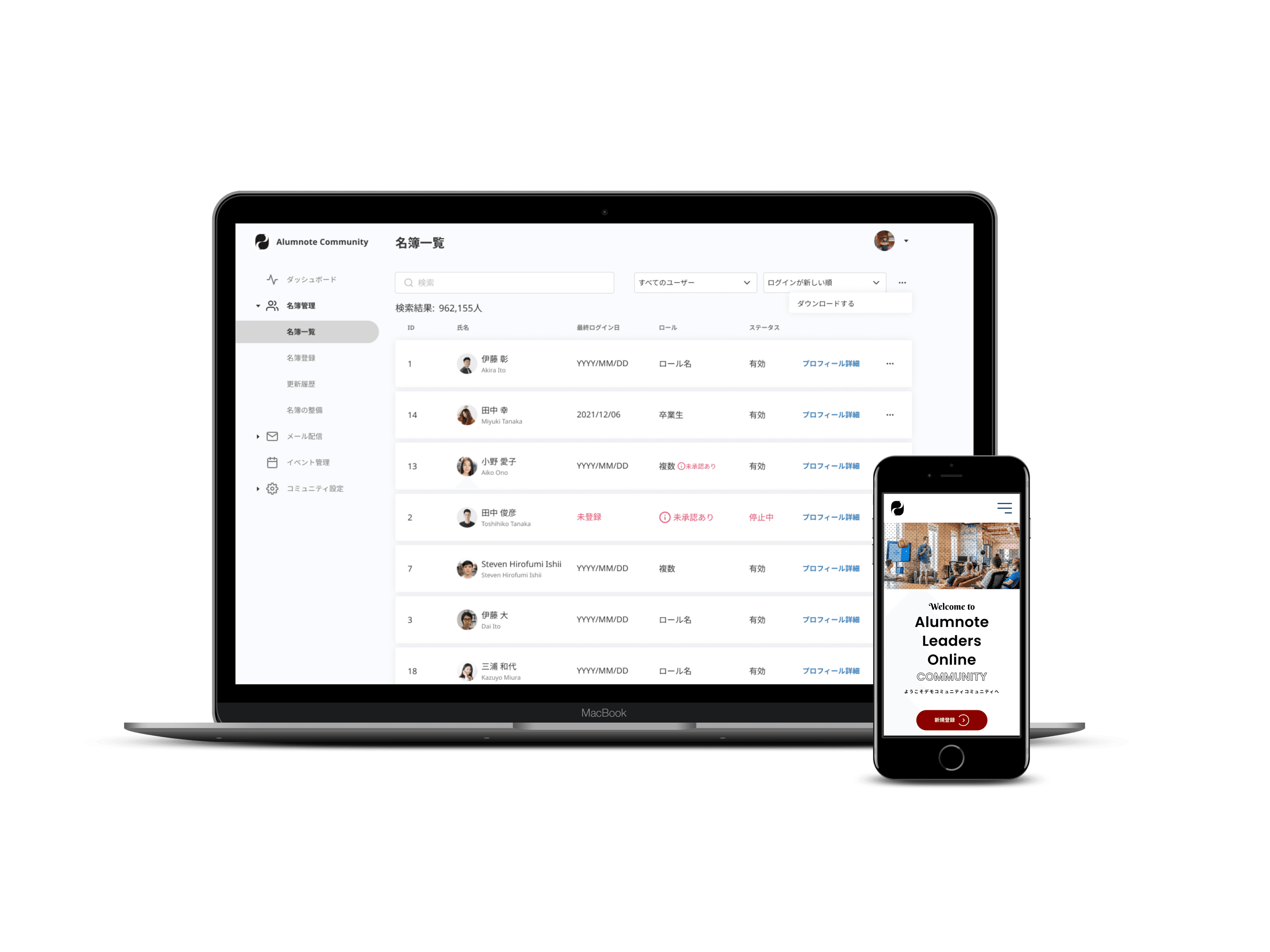同窓会やコミュニティの名簿、 会費徴収、構成員の更新情報を 一括管理するクラウドシステム