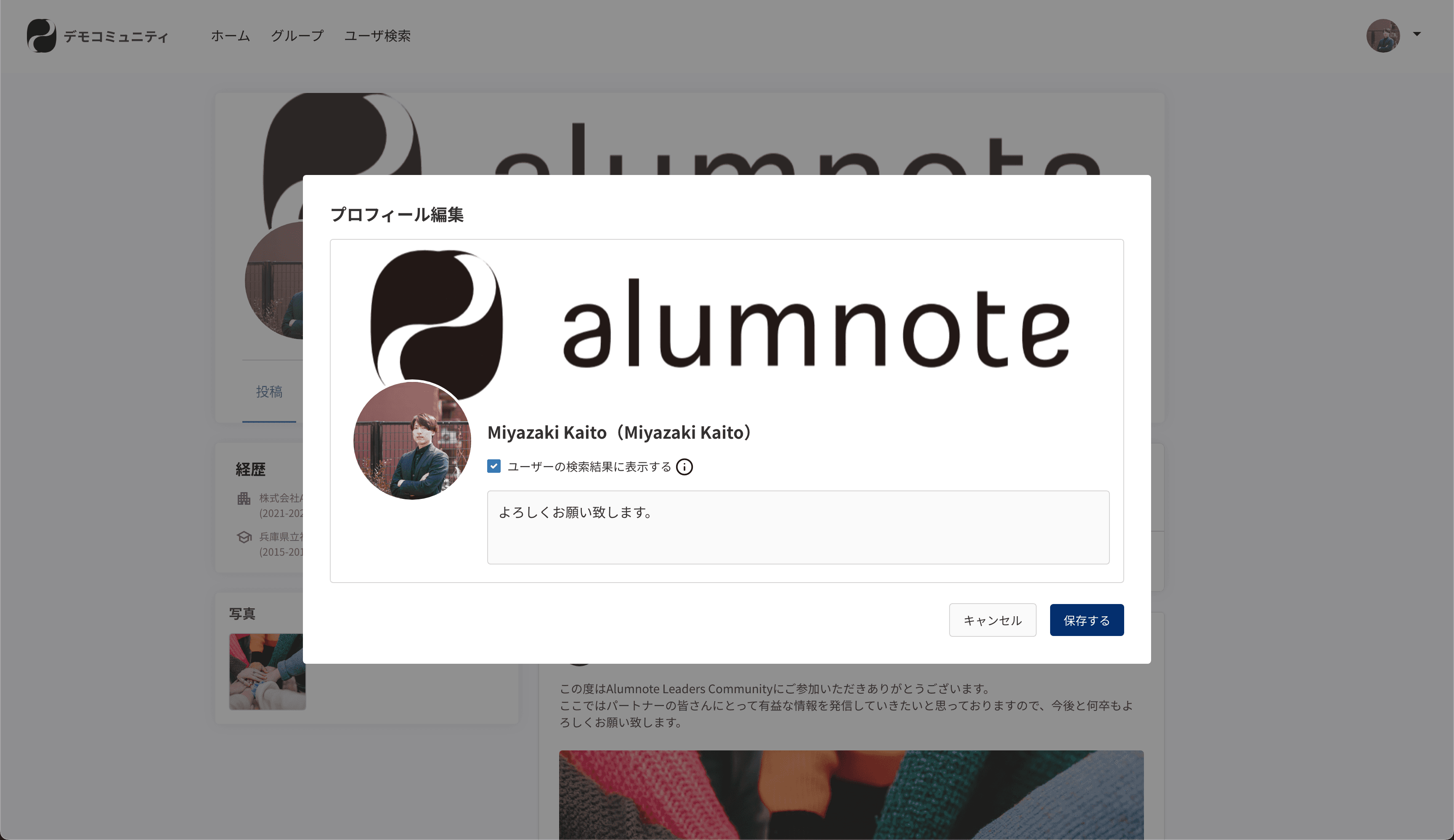 昨年のリリース以来、Alumnoteの名簿管理サービスとコミュニティサービスを合わせてご利用いただいています。クラウドシステムに移行して広報活動の集客効果や構成員情報が見える化されたことで、Alumnote導入前と比べ名簿管理やコミュニティ運営が非常に楽になり、校友会運営に前向きに取り組めるようになりました。