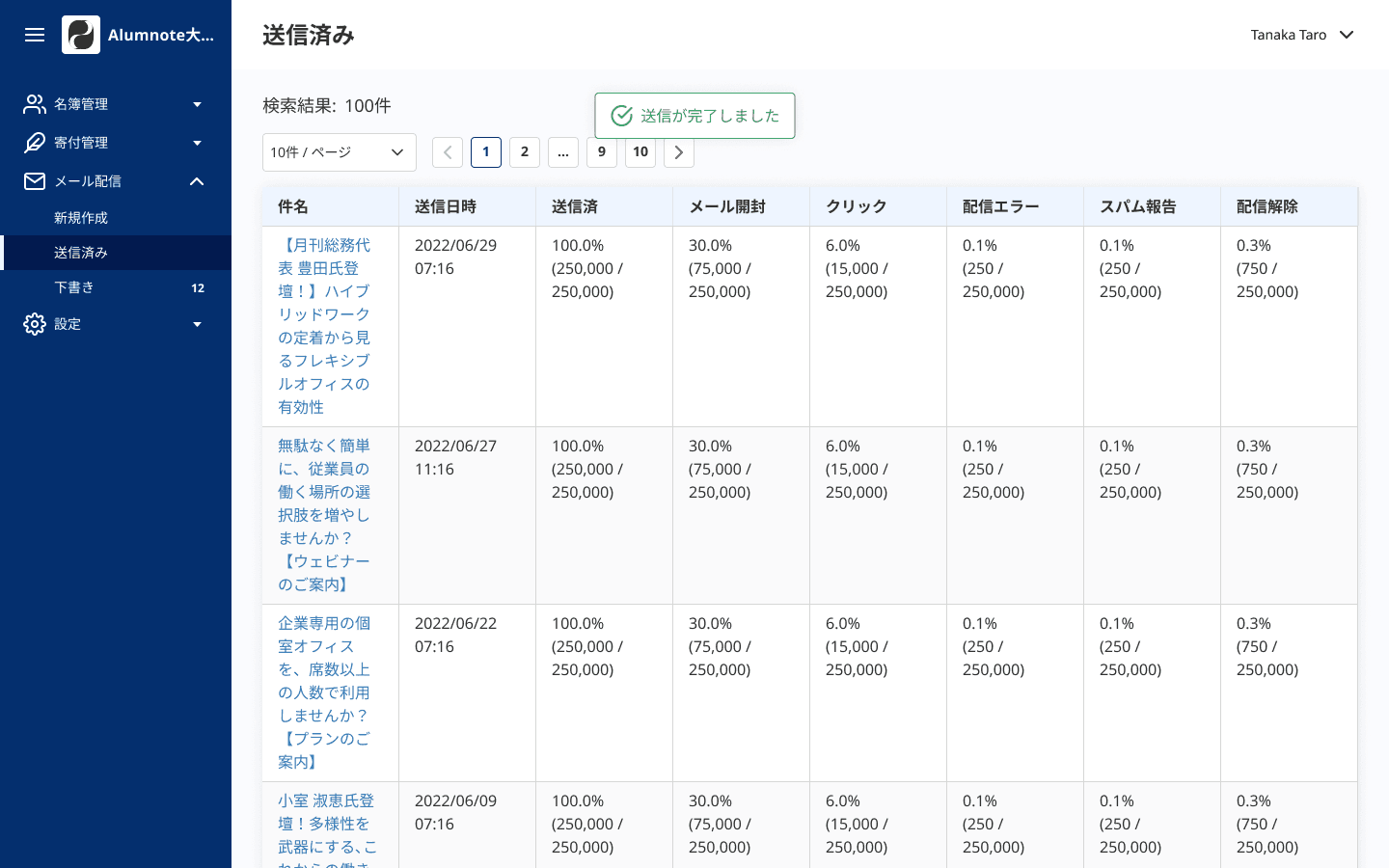 直感的なCMSで、誰でも簡単に綺麗なHTMLメールを作成して配信することができます。また、開封率やクリック率・配信解除率など、同窓会運営に役立つ分析機能も充実しております。