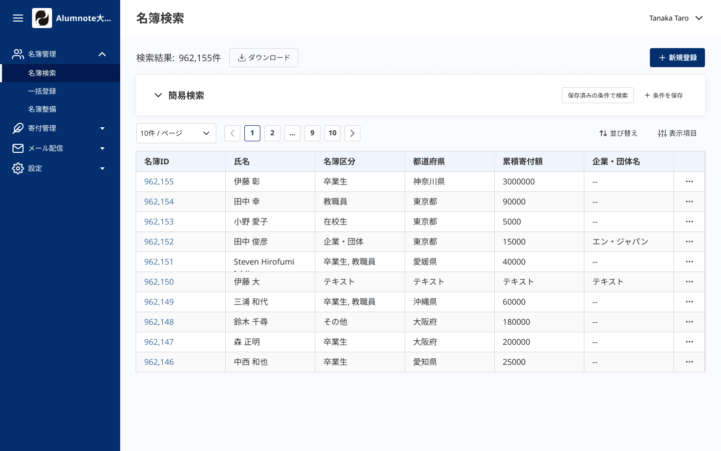 操作性抜群の名簿管理機能は、幅広い世代にご利用いただく事を想定した直感的で分かりやすいユーザーインターフェースを採用しています。柔軟性も兼ね備えており、同窓会様のニーズに合わせてご自身でカスタマイズいただくことも可能となっております。
